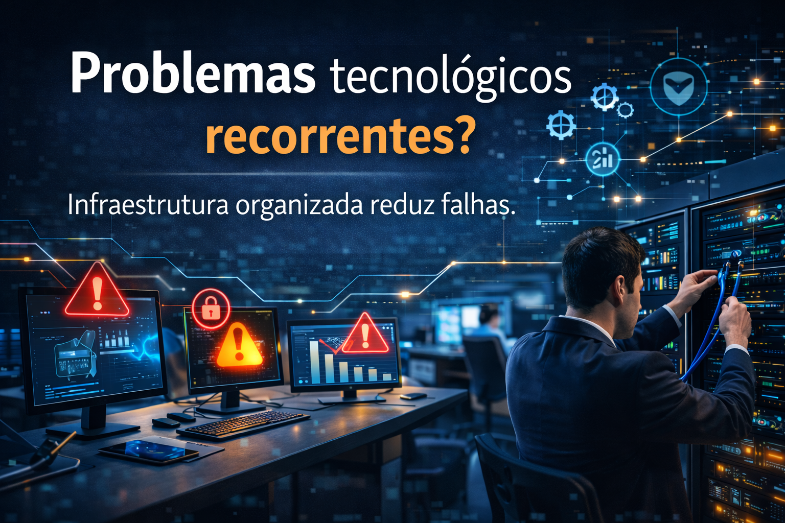 Na maioria dos casos, esses problemas estão relacionados à falta de organização tecnológica, ausência de manutenção preventiva ou infraestrutura inadequada.